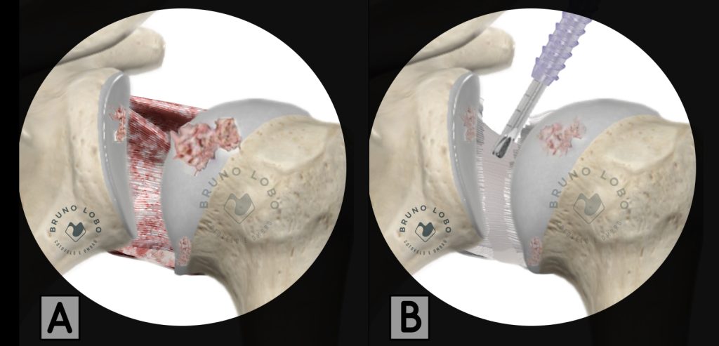 Normalmente iniciamos a fisioterapia entre 2 e 4 semanas. O paciente progride no processo de fortalecimento e finalização dos últimos graus de movimento nas próximas semanas. Gradualmente vai retornando a suas atividades profissionais e esportivas, com previsão de retorno sem restrição a partir de 3 meses.