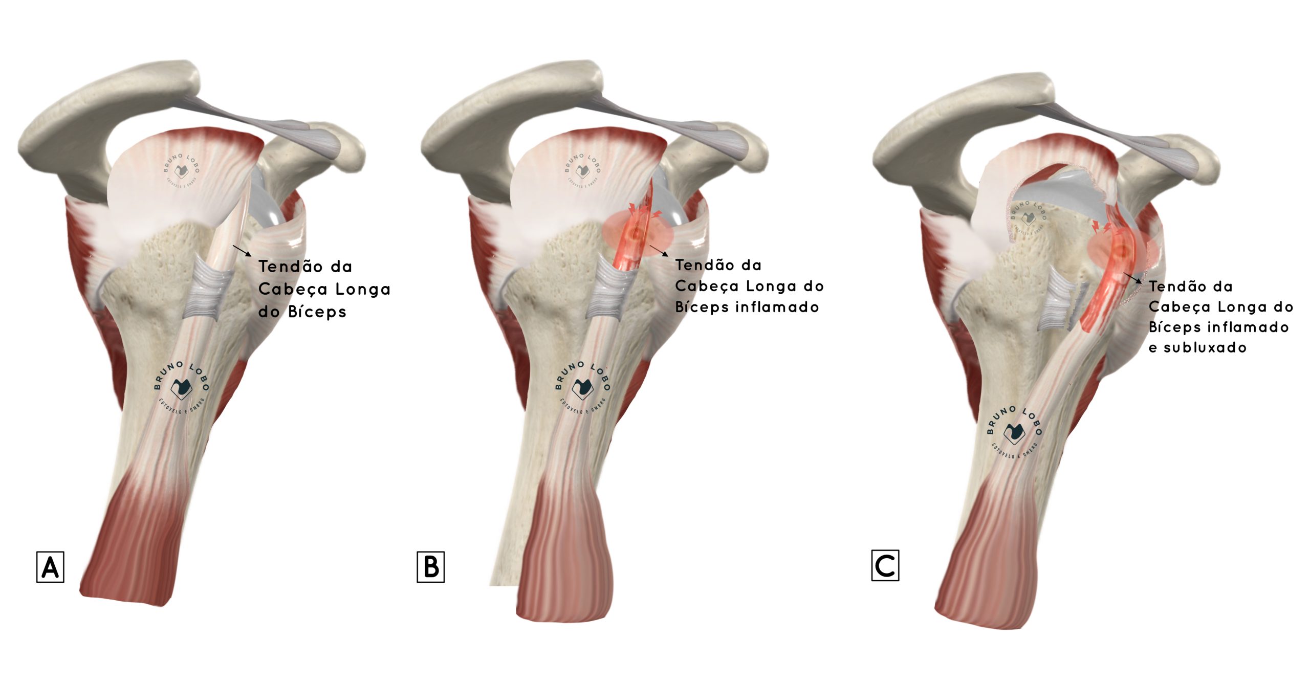 O tendão da cabeça longa do bíceps (TCLB) passa por um sulco apertado no úmero é coberto por um ligamento. Movimentos repetitivos e / ou sobrecarga no ombro podem levar a uma inflamação do TCLB, tanto em atividades cotidianas quanto na prática esportiva. Quando essa inflamações se tornam persistentes, vão tornando o tendão mais espessado e fibrosado, o que aumenta ainda mais seu atrito dentro do túnel estreito em que passa. Além disso, com o tempo vai ocorrendo um comprometimento da estrutura do tendão, que vai ficando degenerado e mais frágil. Quando este processo persiste, o tendão pode se romper.