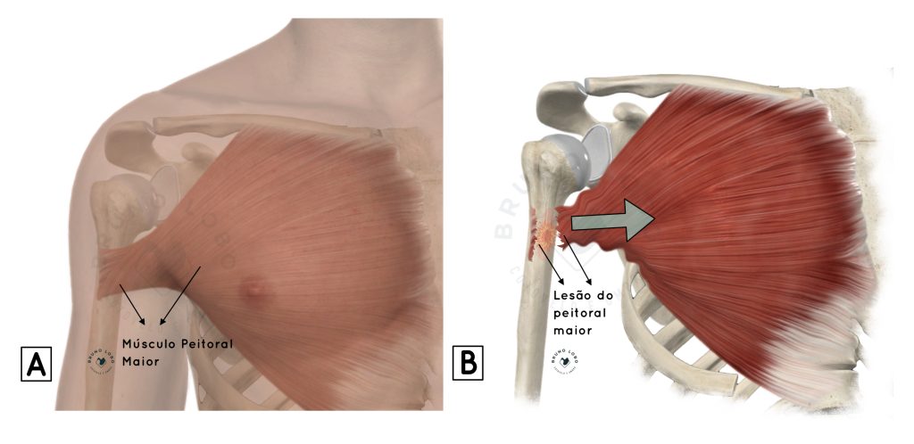 A lesão do músculo peitoral maior não é comum, ocorrendo principalmente em pacientes jovens com grande sobrecarga de esforço físico. Uso frequente de medicamentos corticosteróides e anabolizantes também são fatores de risco. O diagnóstico é normalmente bem claro clinicamente, com presença de dor intensa e uma deformidade pela retração do tendão, mas a ressonância magnética pode ajudar a caracterizar melhor a lesão. O tratamento normalmente é cirúrgico, especialmente nos mais jovens e ativos.